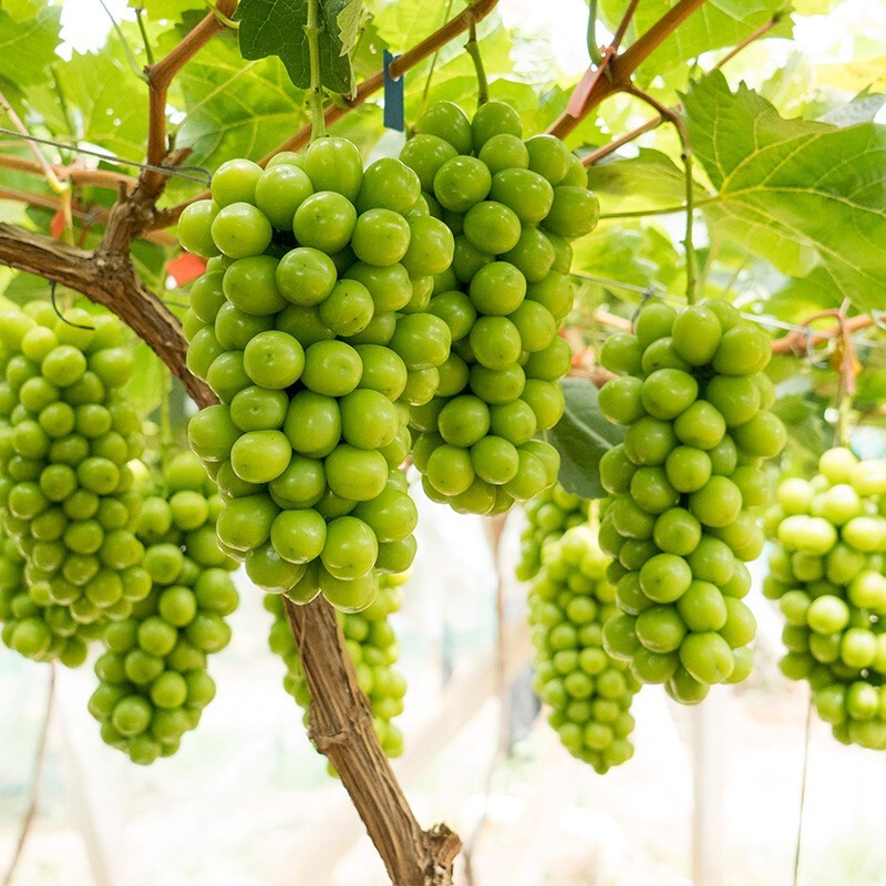 阳光玫瑰葡萄是葡萄科、葡萄属植物,丰产、稳产,大粒,抗病,耐贮性好,栽培简单。果穗圆锥形,果粒椭圆形,黄绿色,果面有光泽,果粉少。果肉鲜脆多汁,有玫瑰香味,可溶性固形物含量20%以上,鲜食品质极优。