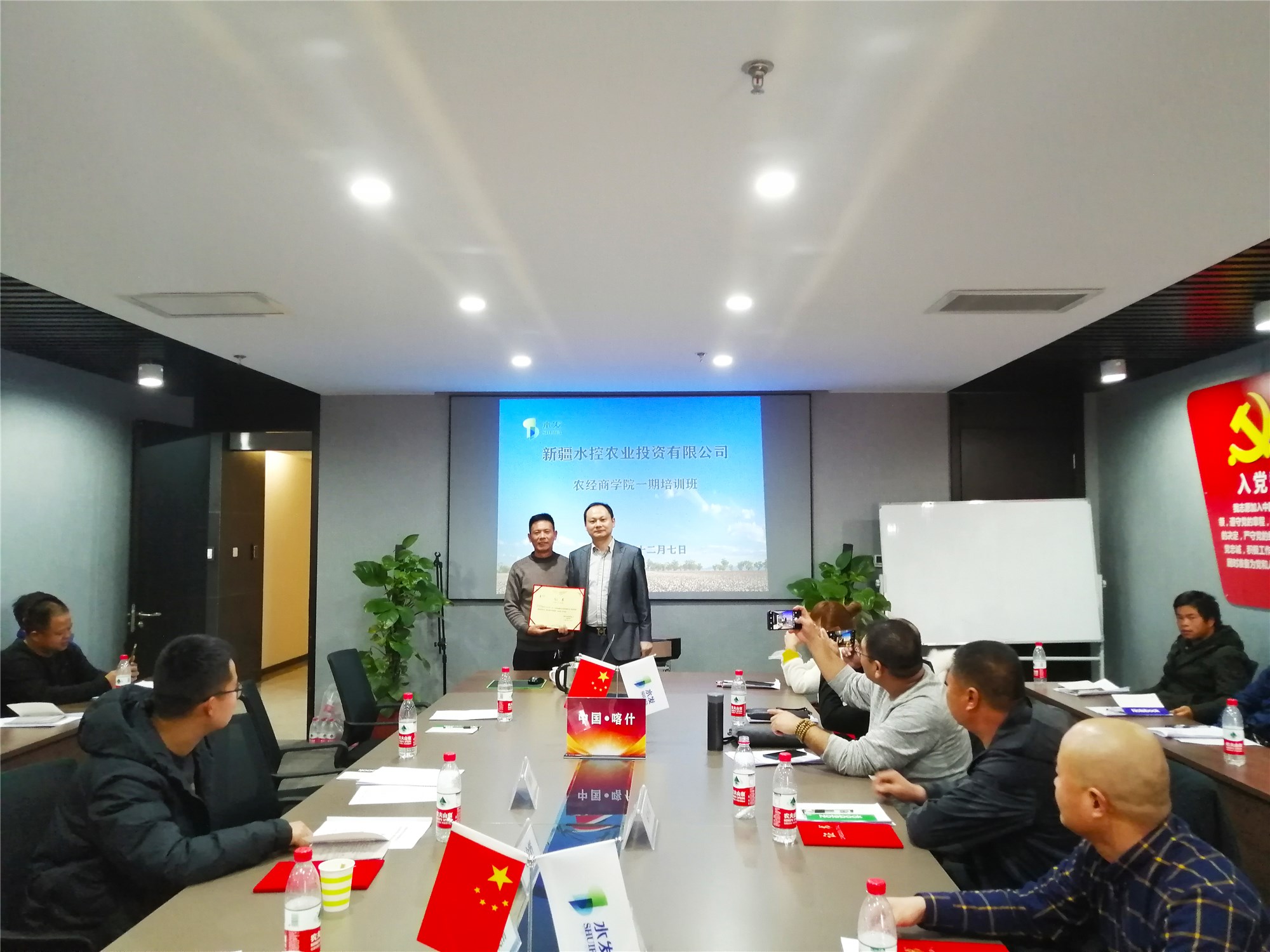 开班仪式上,王占先以“扎根新疆,合作共赢,共创农业全产业链闭环运营新模式”为主题,介绍了水控农发KY.COM开云体育(中国)科技公司、新疆水控农业投资有限公司的发展历程、现状、未来五年的发展目标以及农业全产业链闭环运营的新模式。该模式以土地承包经营权为核心,全力整合上下游资源,实现“土地流转分包-智慧农业管理-农资农机及融资服务-棉花收购加工销售”的闭环运营,打造上下游多方利益共同体。该模式受到了与会种植合作单位代表的高度认同和积极参与。 高级农艺师李孟玉,曾创下了兵团棉花高产三连冠的佳绩,李老师以“棉花水肥一体化运筹技术”为主题,向与会学员讲授了棉花种植不同时期水肥运筹的关键技术点,并就学员遇到的实际困难和问题,进行了深入浅出的讲解。公司科技部负责人、农艺师刘和平,以“南疆棉花、甜菜丰产栽培关键技术”为主题,对棉花、甜菜种植的全过程,进行了系统的讲解。公司副总经理管海龙,向与会学员介绍了水控农发KY.COM开云体育(中国)科技公司的具体惠农政策。培训课程由公司副总经理张弛主持,在完成了预定培训课程和笔试考核后,一期培训班圆满结束。