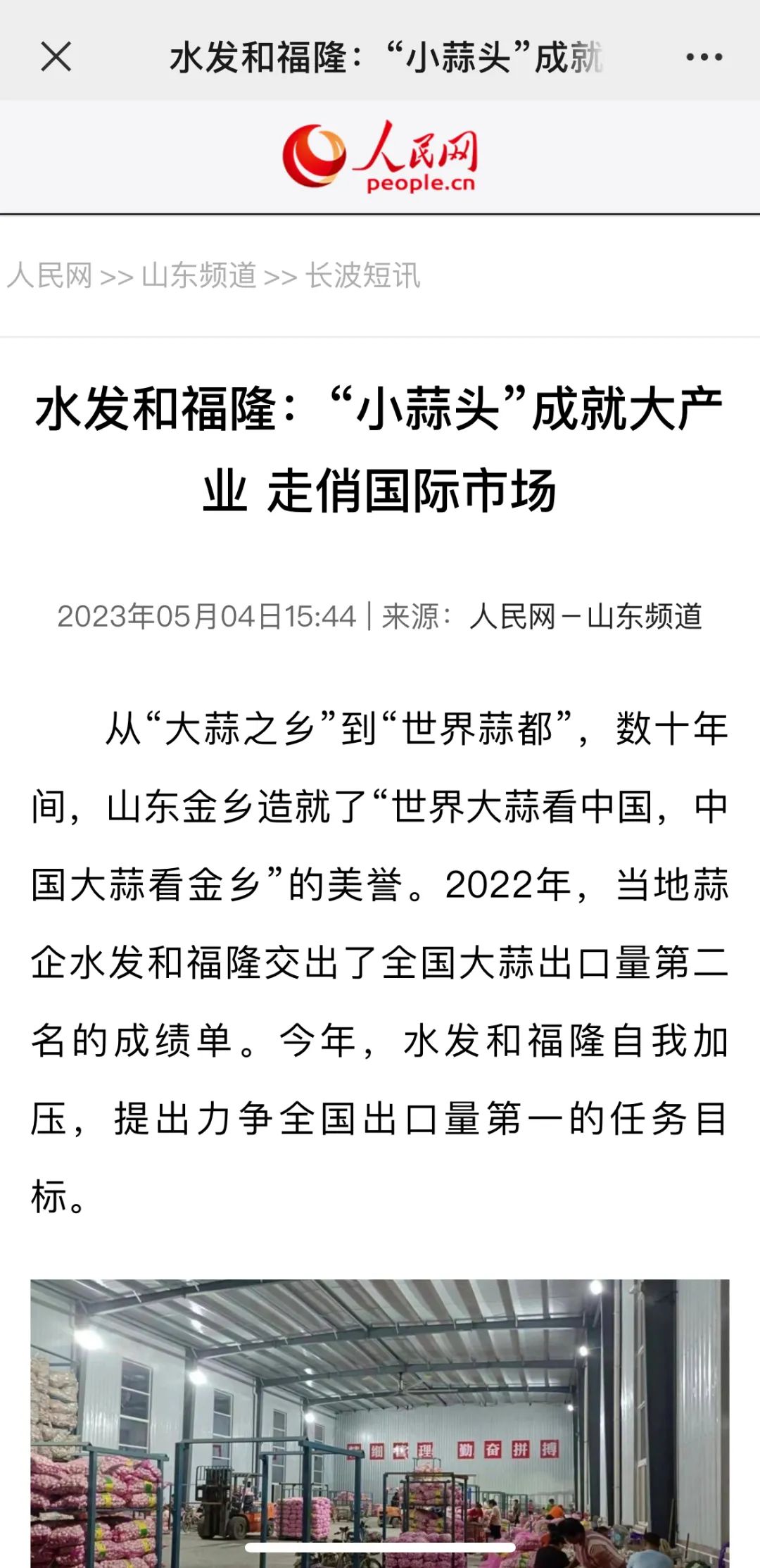 从“大蒜之乡”到“世界蒜都”,数十年间,山东金乡造就了“世界大蒜看中国,中国大蒜看金乡”的美誉。2022年,当地蒜企水发和福隆交出了全国大蒜出口量第二名的成绩单。今年,水发和福隆自我加压,提出力争全国出口量第一的任务目标。